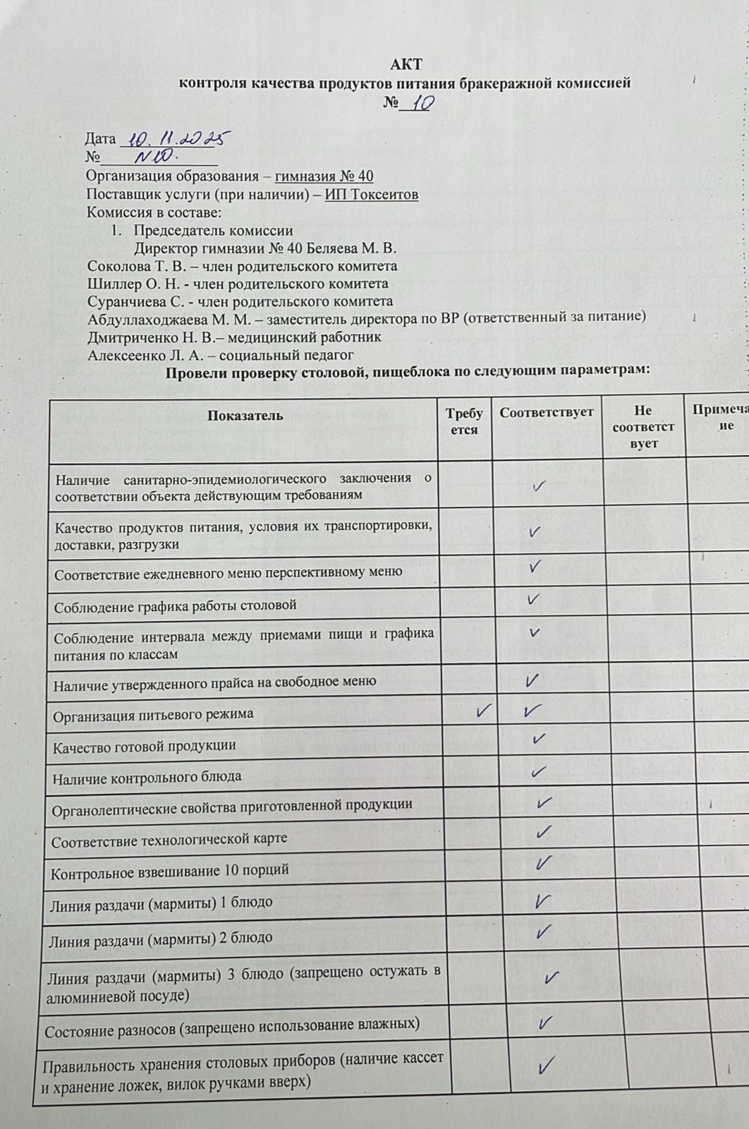 10 ноябрь 2025 0 1 2 3 4 5 Акт контроля качества продуктов питания бракеражной комиссией за 10.10.2025 г."