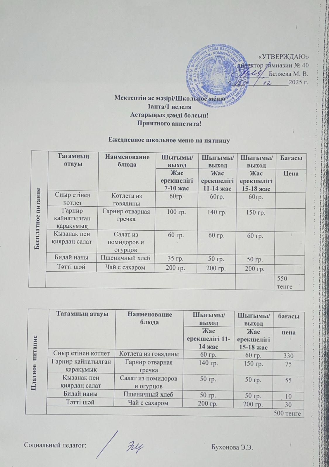Ежедневное меню на 05.12.2025 г. » Гимназия №40