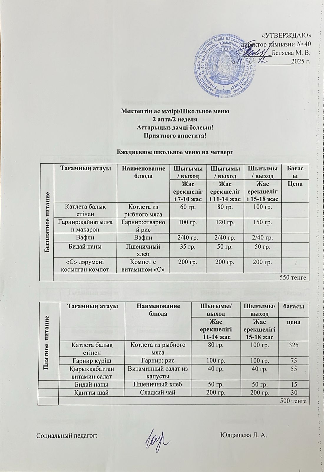 Ежедневное меню на 09.12.2025 г. » Гимназия №40