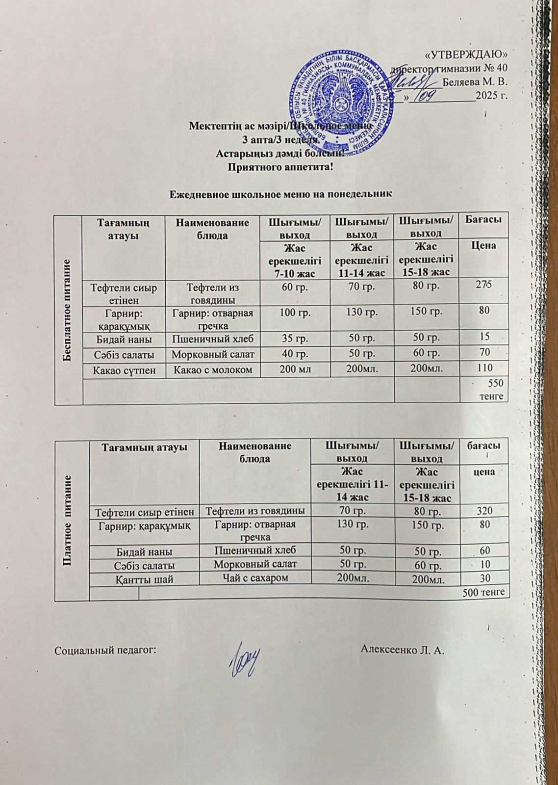 Ежедневное меню на 15.09.2025 г. » Гимназия №40