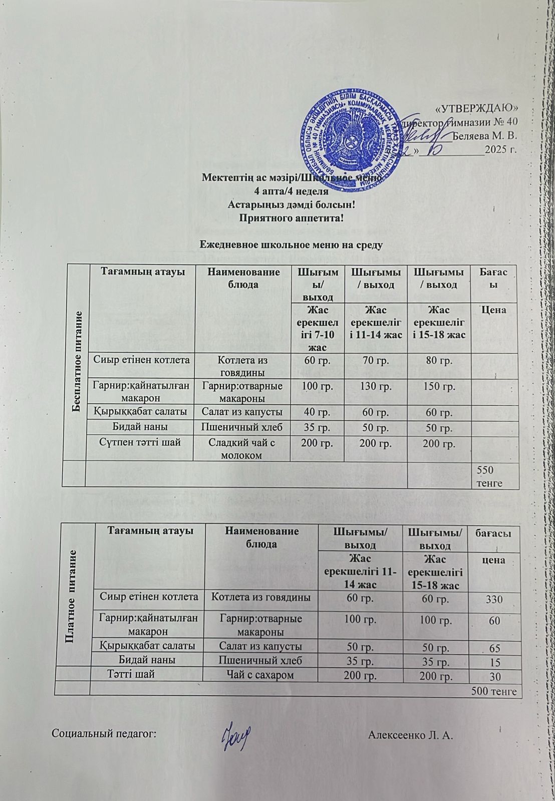 Ежедневное меню на 22.10.2025 г. » Гимназия №40