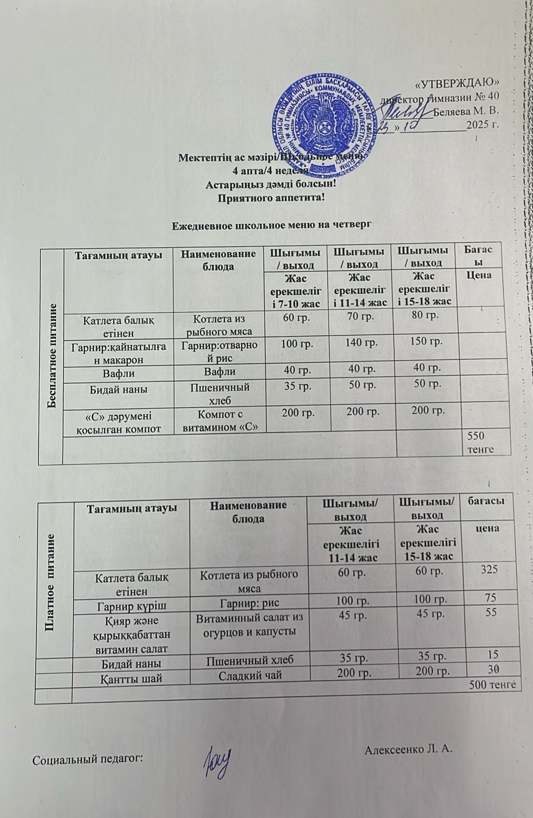 Ежедневное меню на 23.10.2025 г. » Гимназия №40