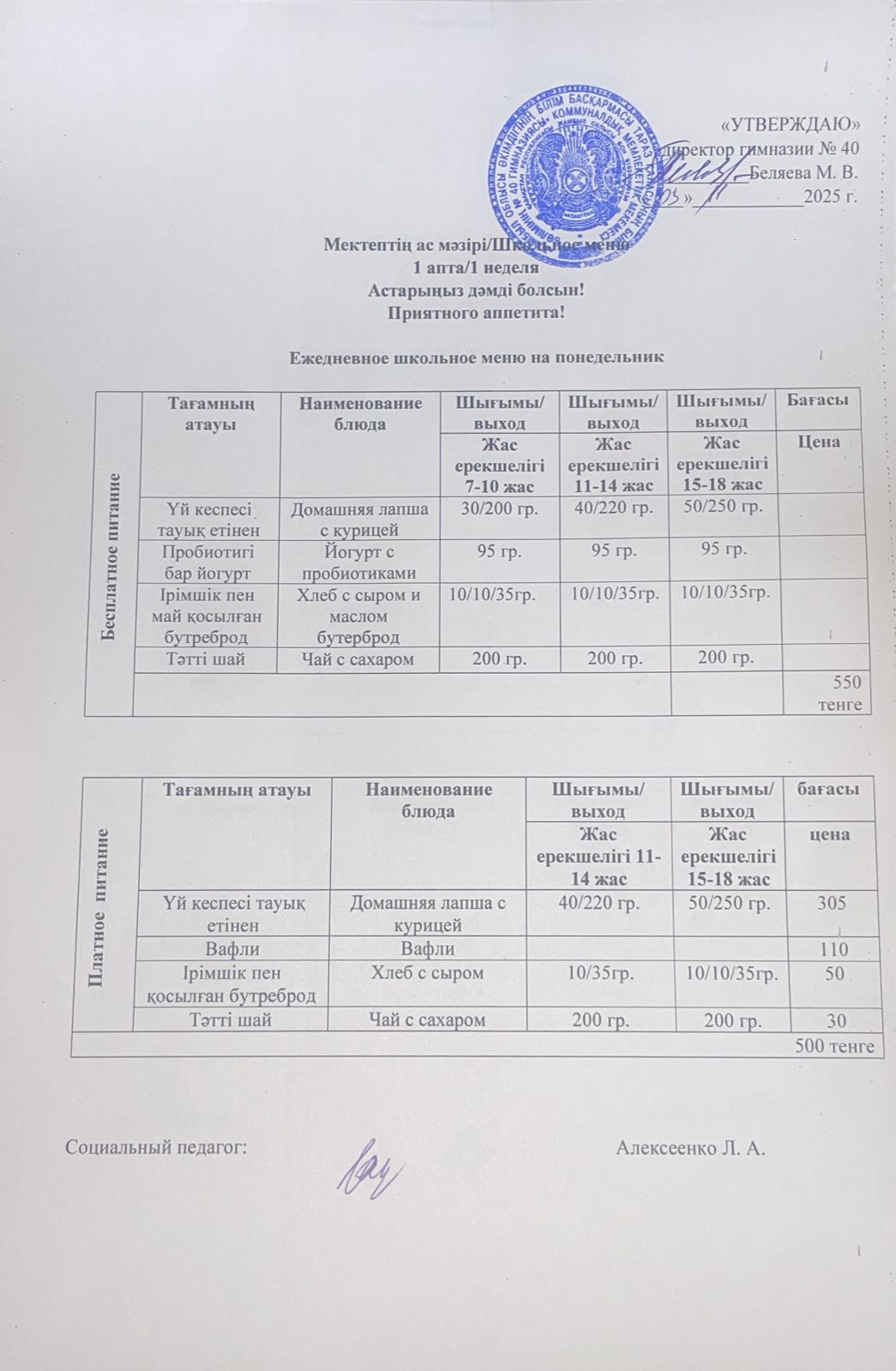 Ежедневное меню на 03.11.2025 г. » Гимназия №40