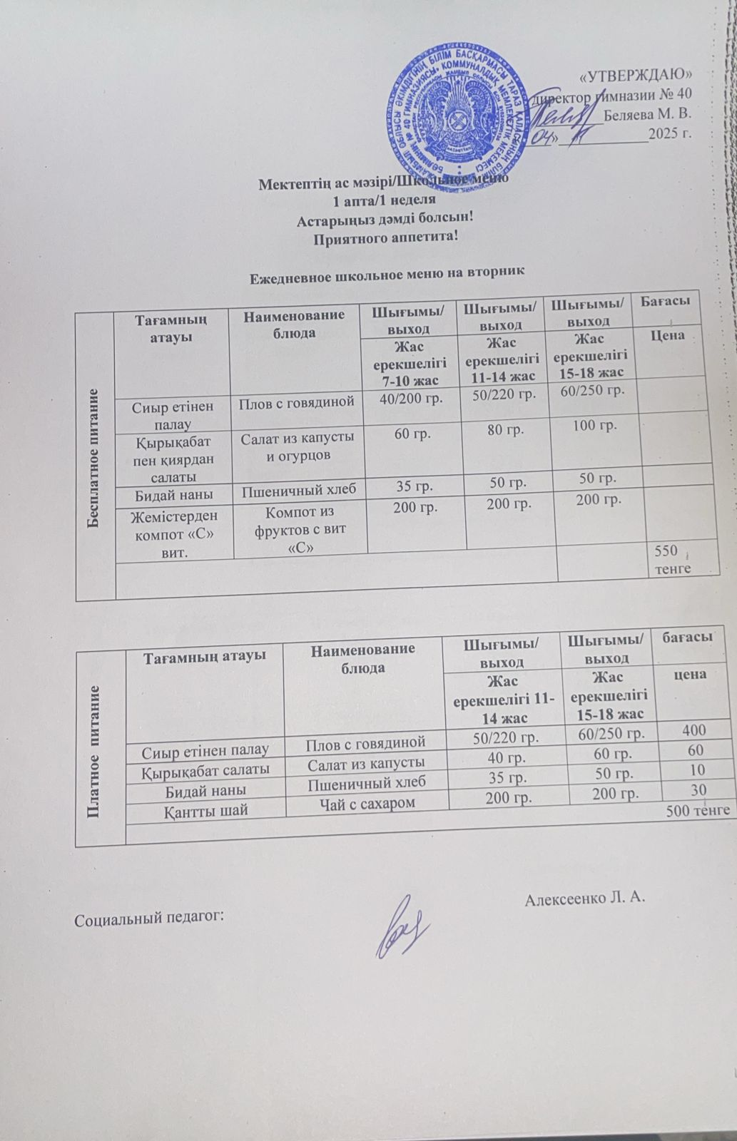 Ежедневное меню на 04.11.2025 г. » Гимназия №40