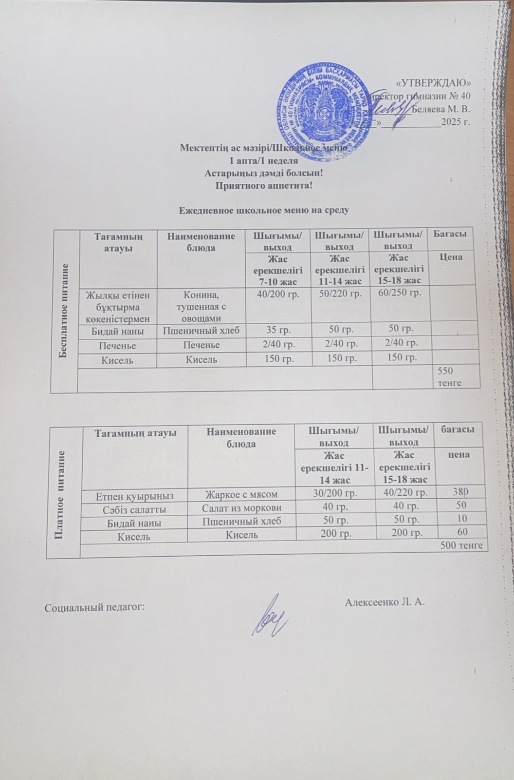 Ежедневное меню на 05.11.2025 г. » Гимназия №40