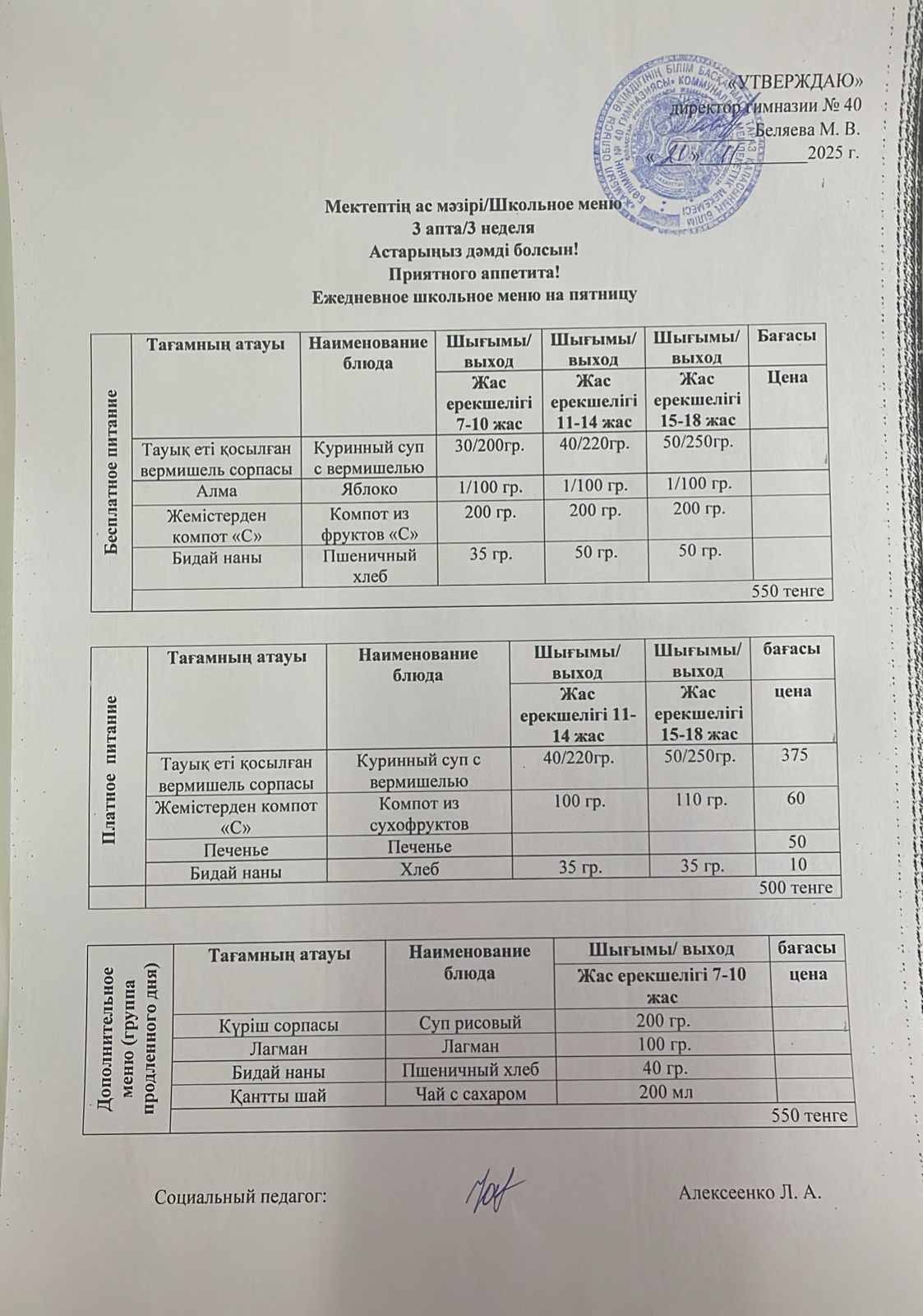 Ежедневное меню на 21.11.2025 г. » Гимназия №40