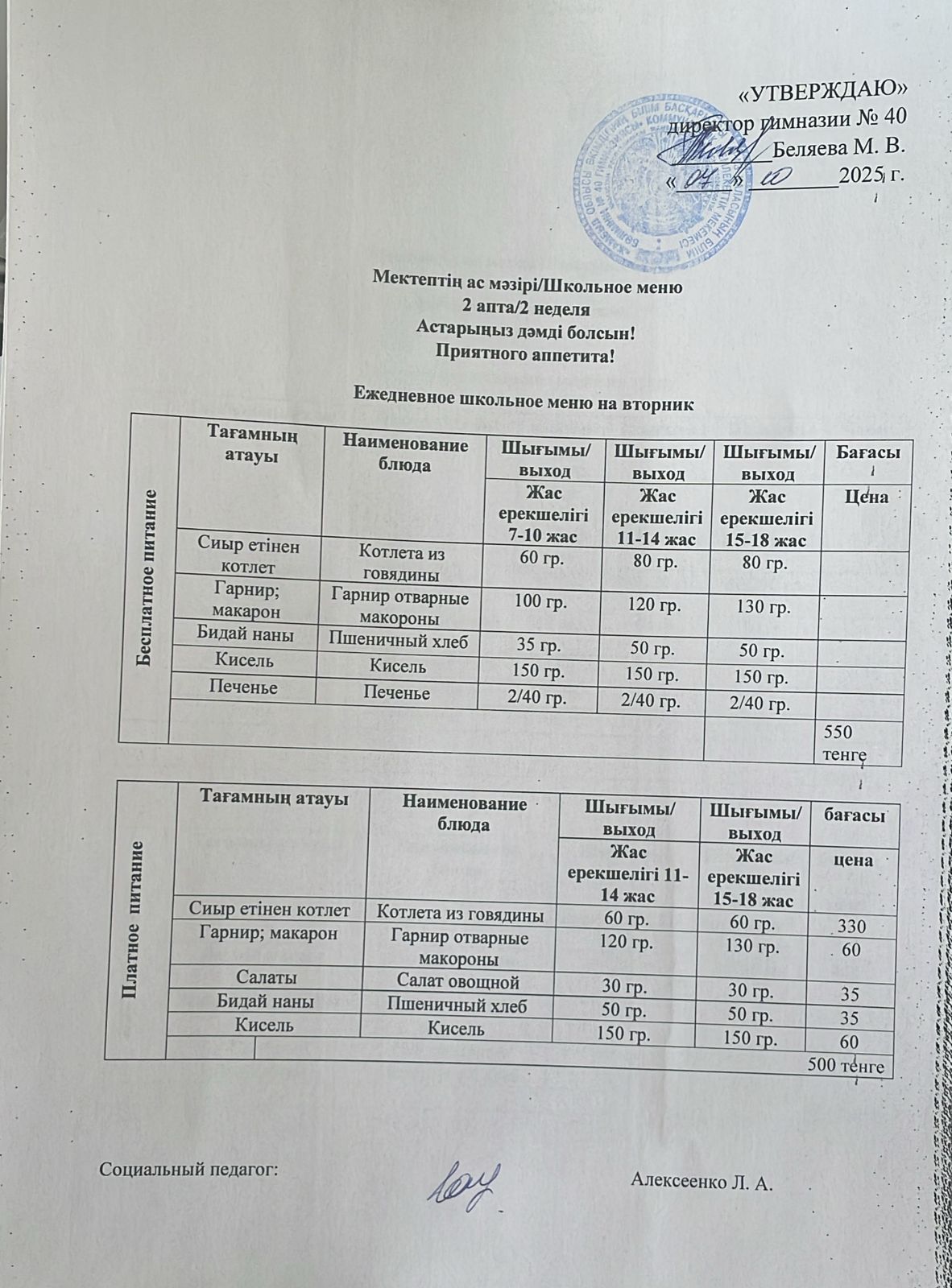 Ежедневное меню на 07.10.2025 г. » Гимназия №40