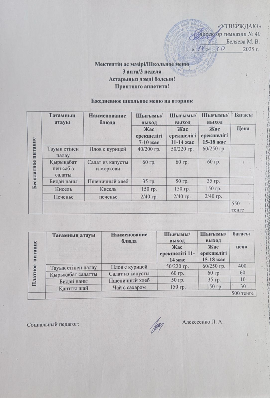 Ежедневное меню на 14.10.2025 г. » Гимназия №40