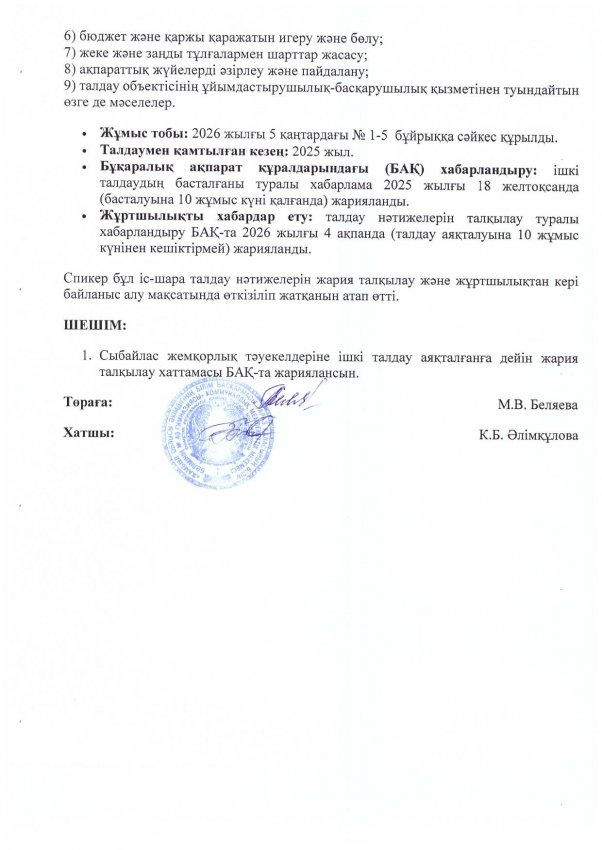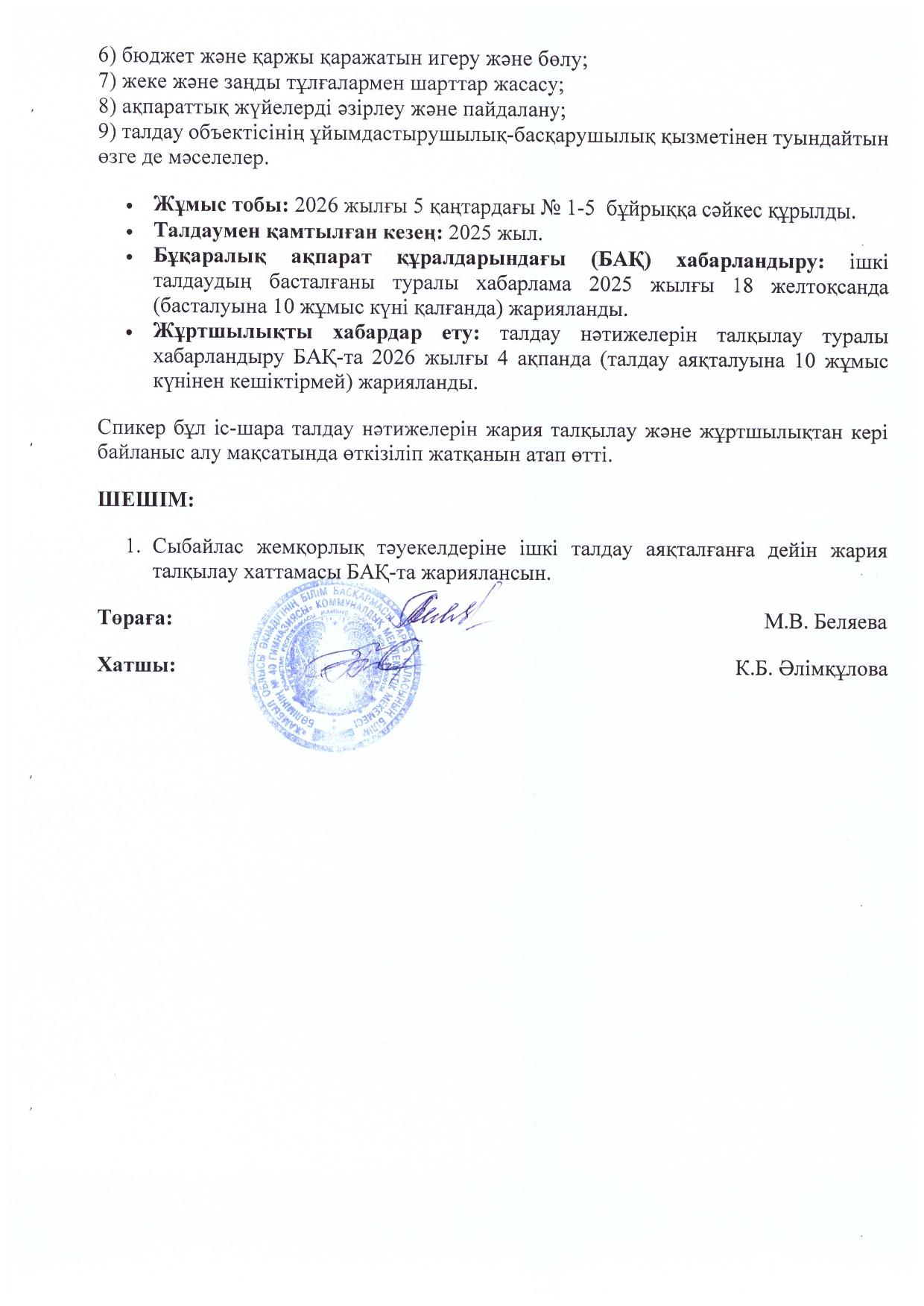 » » » Сыбайлас жемқорлық тәуекелдерін ішкі талдау нәтижелерін жария талқылау ХАТТАМАСЫ