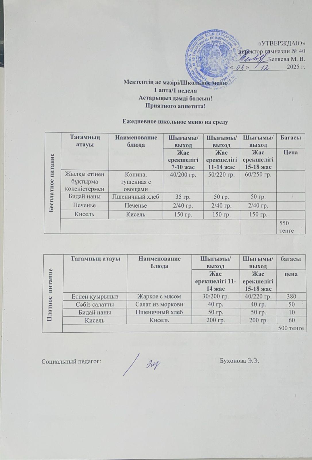 Ежедневное меню на 03.12.2025 г. » Гимназия №40