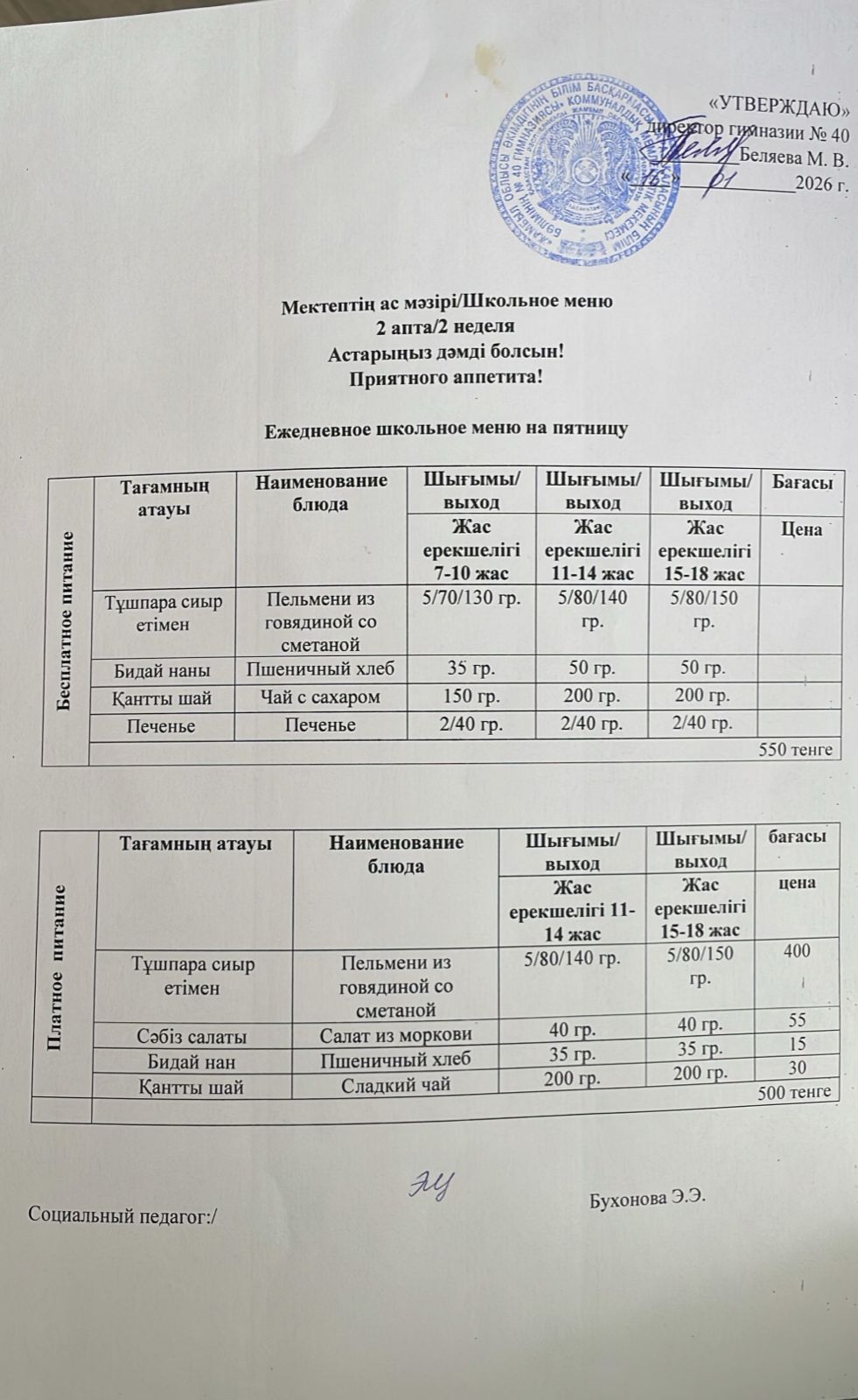 Ежедневное меню на 16.01.2026 г. » Гимназия №40