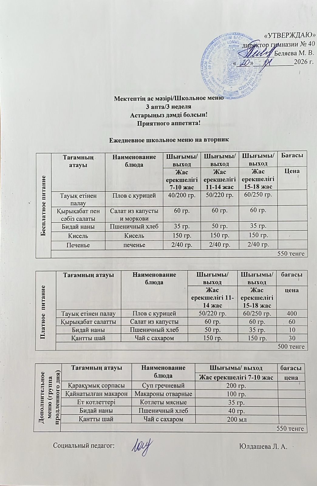 Ежедневное меню на 20.01.2026 г. » Гимназия №40