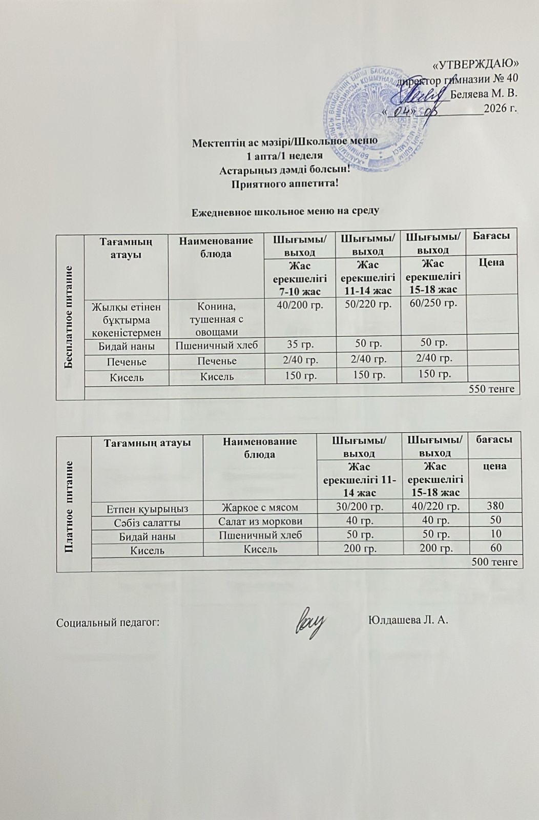 Ежедневное меню на 04.03.2026 г. » Гимназия №40