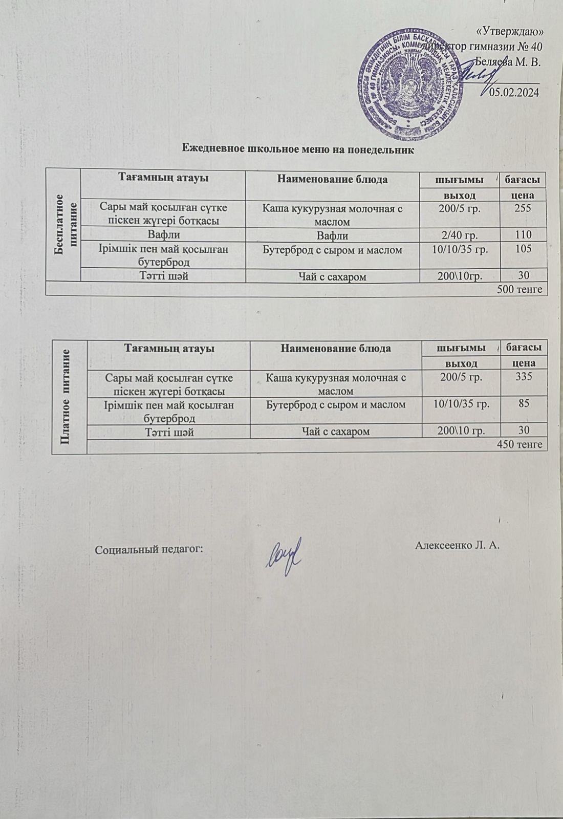 Ежедневное меню 05.02.2024 г. » Гимназия №40