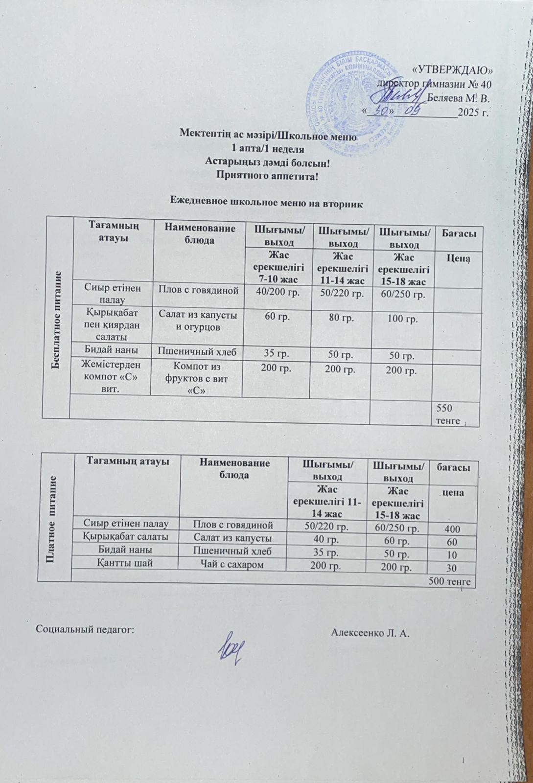Ежедневное меню на 30.09.2025 г. » Гимназия №40